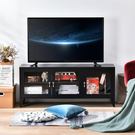 Tv Stand For 55 Inch Tv Black Entertainment Center With Storage Cabinet And Open Shelves Metal Media Console For Living Room Modern Metal Universal Tv Stand Black Accuweather Shop